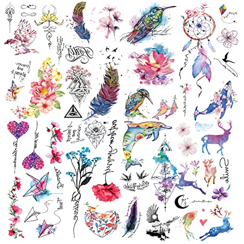 Amazon Com Oottati 8 Sheets Hand Temporary Tattoos 30 Cute Pink Light Blue Mix Flower Deer Dolphin Feather Heart Fish Whale Bird Dreamcatcher Lotus For Women Beauty Personal Care